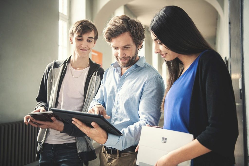 Mit den neuesten Surface-Geräten von Microsoft sind Lehrkräfte für den digitalen Unterricht perfekt aufgestellt. Und zwar pädagogisch durchdacht: Mit dem Surface Go 2, das speziell für SchülerInnen bis Klassenstufe 8 geeignet ist, oder dem Surface Pro 7, das mit USB-C- und USB-A-Anschlüssen und einer Akkulaufzeit von mehr als 10 Stunden den idealen Begleiter durch den Schultag darstellt. Das ganz neue Surface Laptop Go unterstützt Lernende und Lehrkräfte zuverlässig bei der Erledigung ihrer Aufgaben. Sogar das digitale Schulheft und Klassenbuch werden gleich mitgeliefert.