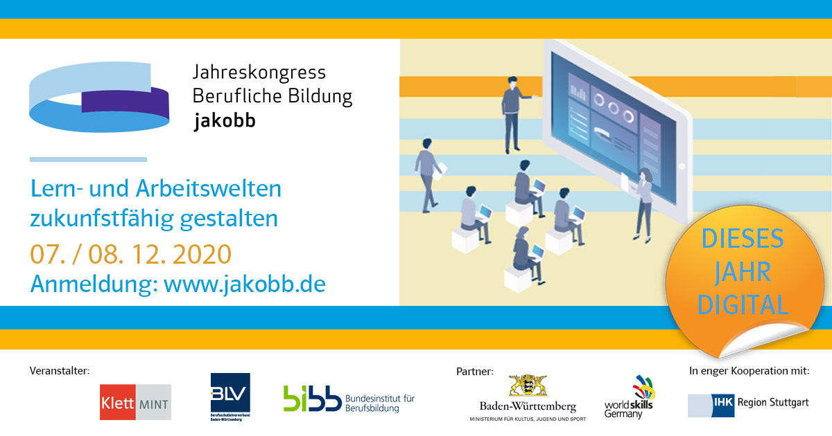 Am 07.-08.12.2020 findet wieder der Jahreskongress Berufliche Bildung (jakobb) statt – erstmalig komplett digital. Für die Teilnehmenden ist die Veranstaltung in diesem Jahr kostenfrei.