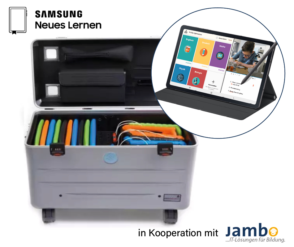 Samsung Neues Lernen. Ein unkompliziertes Gesamtpaket für den digitalen Unterricht. Das hört sich schon einmal ganz gut an, aber was verbirgt sich dahinter? Welche Komponenten beinhaltet diese Lösung? Was braucht meine Schule konkret? Was macht dieses Gesamtpaket so besonders und warum ist es besser als andere? Die jambo GmbH, ein zertifizierter Partner von Samsung Neues Lernen, liefert die wichtigsten Komponenten und erläutert deren didaktischen Mehrwert für den Unterricht.