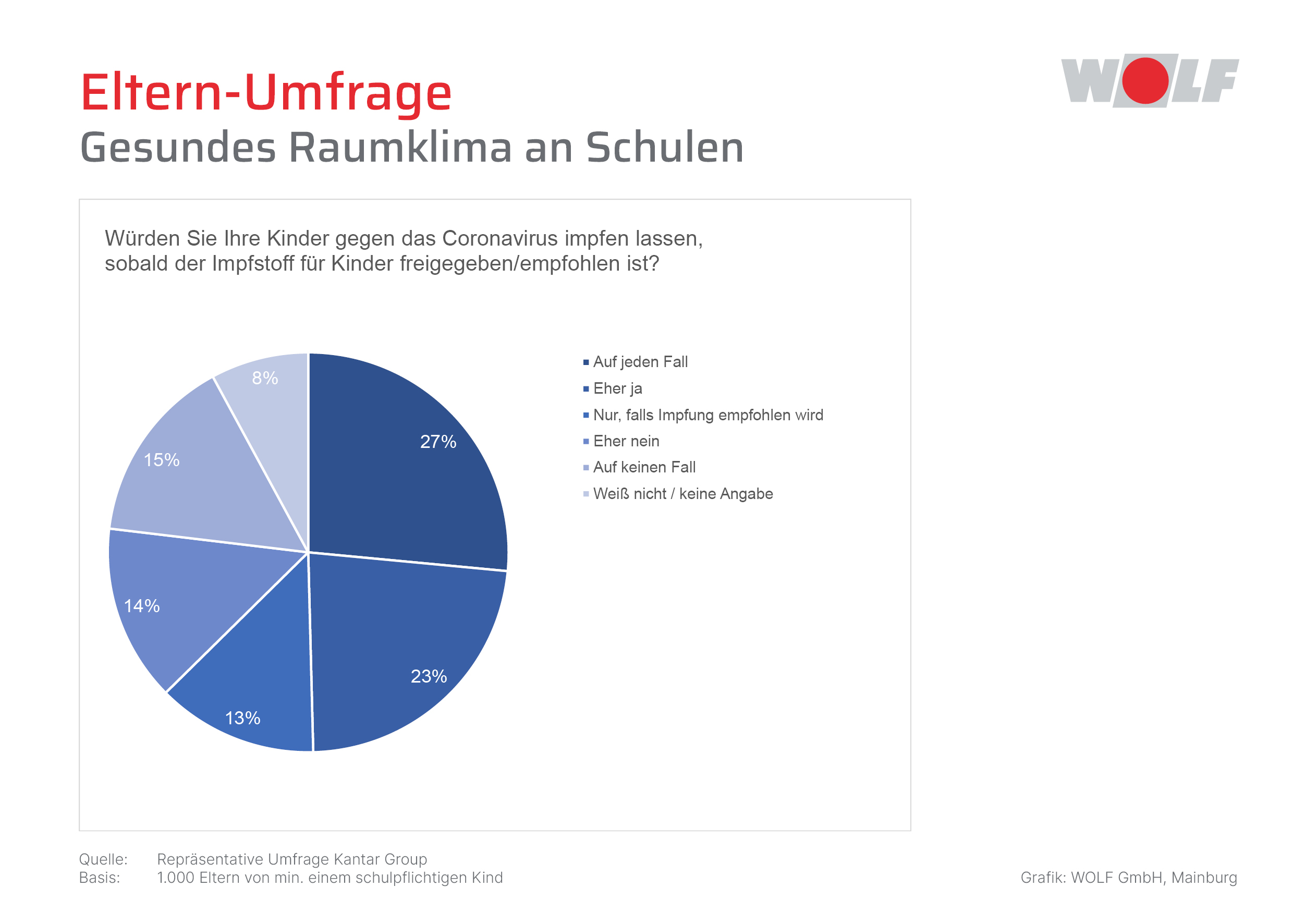 Bereits seit längerem verweisen wissenschaftliche Studien auf die Wirksamkeit von festinstallierten Lüftungsgeräten und mobilen Luftreinigern mit HEPA-Filter bei der effektiven Reduktion von virenbelasteten Aerosolen aus der Raumluft. Trotzdem setzen zu Beginn des neuen Schuljahres nur wenige Schulen bei der Pandemiebekämpfung auf diese Technologien. Das ergab eine repräsentative Umfrage von Kantar, die von der WOLF GmbH in Auftrag gegeben wurde. Hierfür wurden im Sommer 2021 insgesamt 1.000 Eltern von mindestens einem schulpflichtigen Kind befragt.