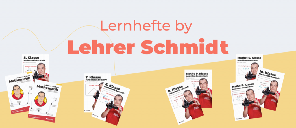 Aus diesem Grund hat Lehrer Schmidt Lernhefte mit StudyHelp entwickelt, welche für die 1. Klasse bis hin zur 10. Klasse verfügbar sind. Außerdem gibt es für die Haupt- und Realschule jeweils ein gesondertes Abschlussheft. Die schriftlichen Ausführungen zu den relevanten Themengebieten werden durch mittels QR-Codes integrierte Videos anschaulich dargestellt.