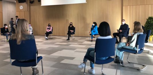 Abgehoben! Wenn ein Ministerpräsident in diesen Tagen eine Schule besucht, dann sieht das so aus…