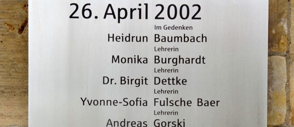 ERFURT. Am 20. Jahrestag des Amoklaufs von Erfurt gedenkt der Thüringer Lehrerverband (tlv) der Opfer – und mahnt zum Aufbau von Netzwerken in und um die Schulen. Thüringens Ministerpräsident Ramelow meint, die Tat habe das Land verändert. „Unsere Gedanken sind bei den Opfern, deren Namen wir hier bewusst nennen wollen“, erklärt Frank Fritze, stellvertretender Landesvorsitzender … Lehrerverband gedenkt Opfer des Erfurter Amoklaufs – und fordert multiprofessionelle Teams weiterlesen