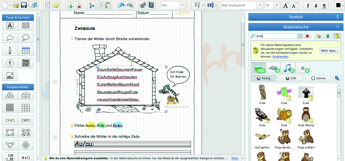 Verlässliche Bildungsmaterialien flexibel nutzbar zu machen, das ist der Wunsch vieler Lehrkräfte, vor allem an Grundschulen. Um das urheberrechtlich unbedenklich und nutzerfreundlich anbieten zu können, kooperiert der Ernst Klett Verlag mit den Machern der beliebten Plattform Worksheet Crafter. Damit können nun erstmals mit ausgewählten Materialpaketen aus den bekannten Lehrwerksmarken Zebra (Deutsch) und MiniMax (Mathe) einfach und schnell eigene Arbeitsblätter erstellt werden.