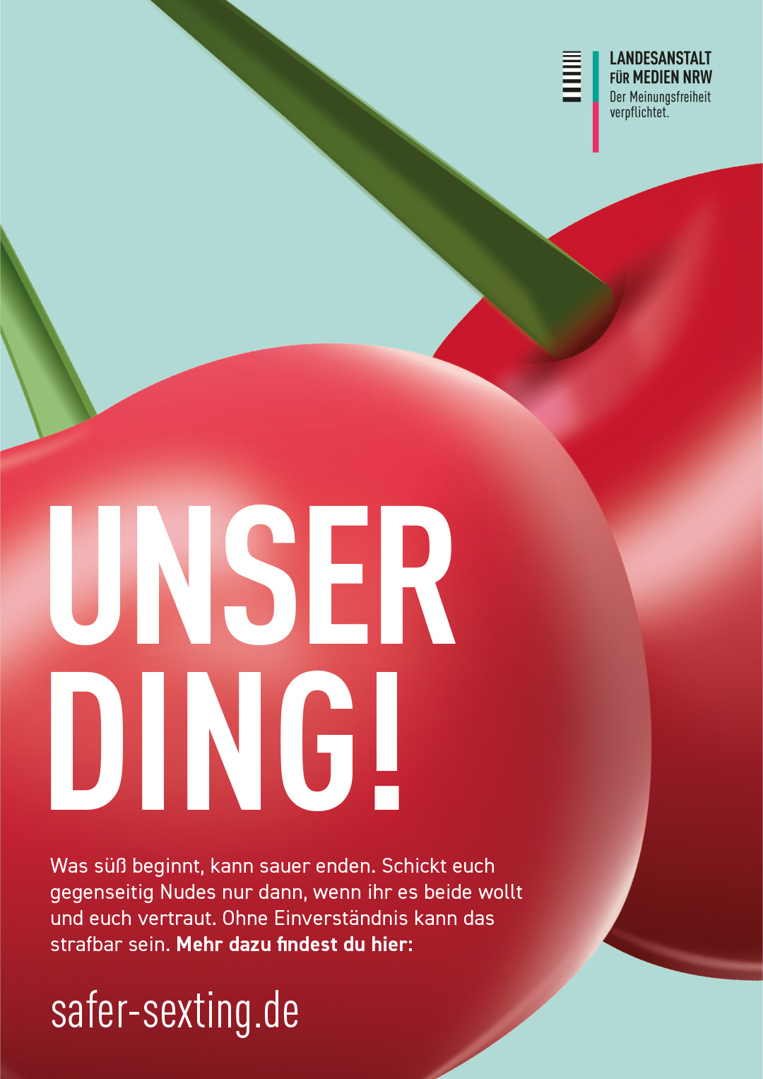 Mit einer landesweiten Kampagne warnt die Behörde nun Jugendliche zwischen 14 und 17 Jahren auf mehr als 1.500 Großflächenplakaten. Zusätzlich zu den Plakaten und einer Website werden über 300 Einrichtungen der Jugendarbeit in NRW mit einem Poster-Set zur Kampagne ausgestattet.
