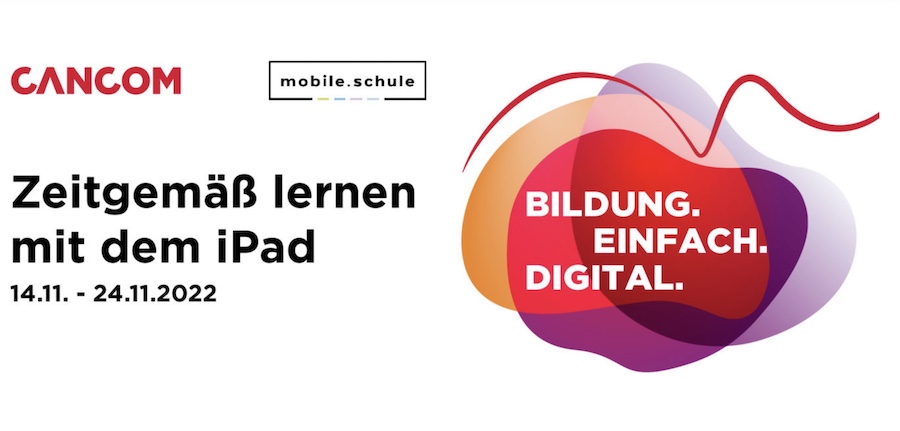 Der November steht im Programm der mobile.schule ganz im Zeichen des iPad. Neben dem vollen Programm, das ohnehin an mehreren Tagen die Woche auf unserer Plattform angeboten wird, bieten wir diesen Monat zwei tolle Fortbildungsreihen in Kooperation mit der Fa. Cancom.