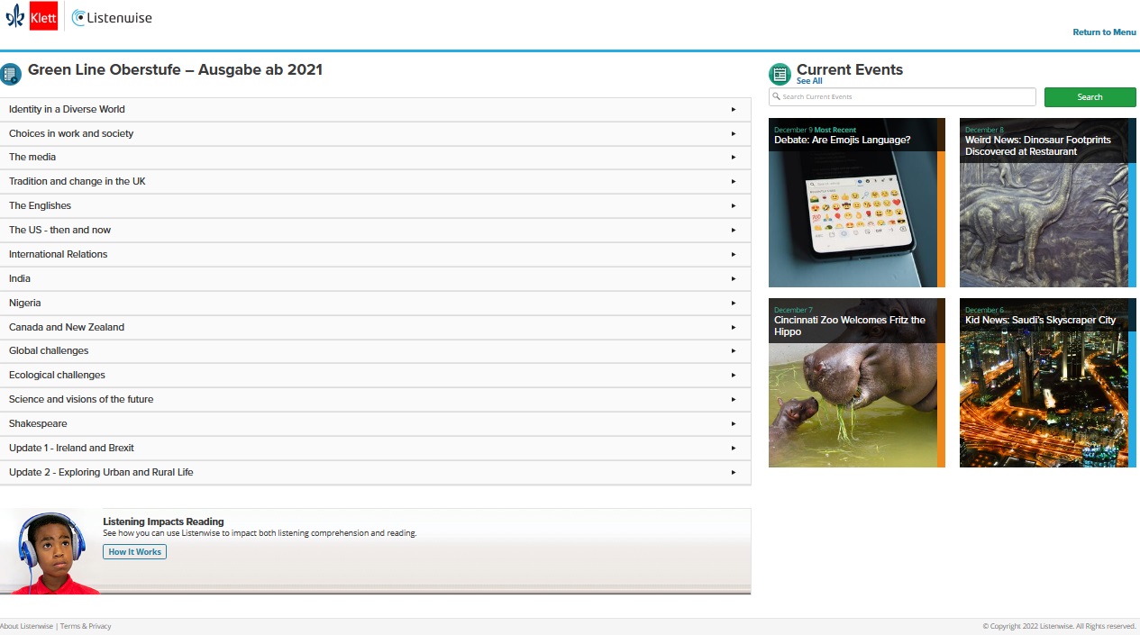 Zu der bekannten Lehrwerksreihe Green Line Oberstufe bietet Klett jetzt neu einen Podcast zu tages- und wochenaktuellen Ereignissen an. Simultanes Mitlesen und zwei Hörgeschwindigkeiten stellen sicher, dass alle beim Hörverstehen im Fach Englisch mitkommen. Das Angebot in Kooperation mit Listenwise ist bislang einzigartig in Deutschland.
