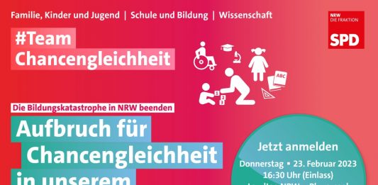 Chancengleichheit ist ein Mega-Thema. Weil sie nicht herrscht. Stattdessen befindet sich NRW mitten in einer Bildungskatastrophe. Die SPD-Fraktion im Landtag NRW lädt deshalb für den 23. Februar Bildungsakteure und Interessierte zu einem LandtagsTalk nach Düsseldorf ein, um gemeinsam mit Vertreter*innen aus Politik, Wissenschaft und Praxis über Lösungswege zu diskutieren. Kinder, Jugendliche und junge Erwachsene – sie … Bildungskatastrophe abwenden – SPD-Fraktion lädt zu Konferenz in NRW-Landtag ein weiterlesen