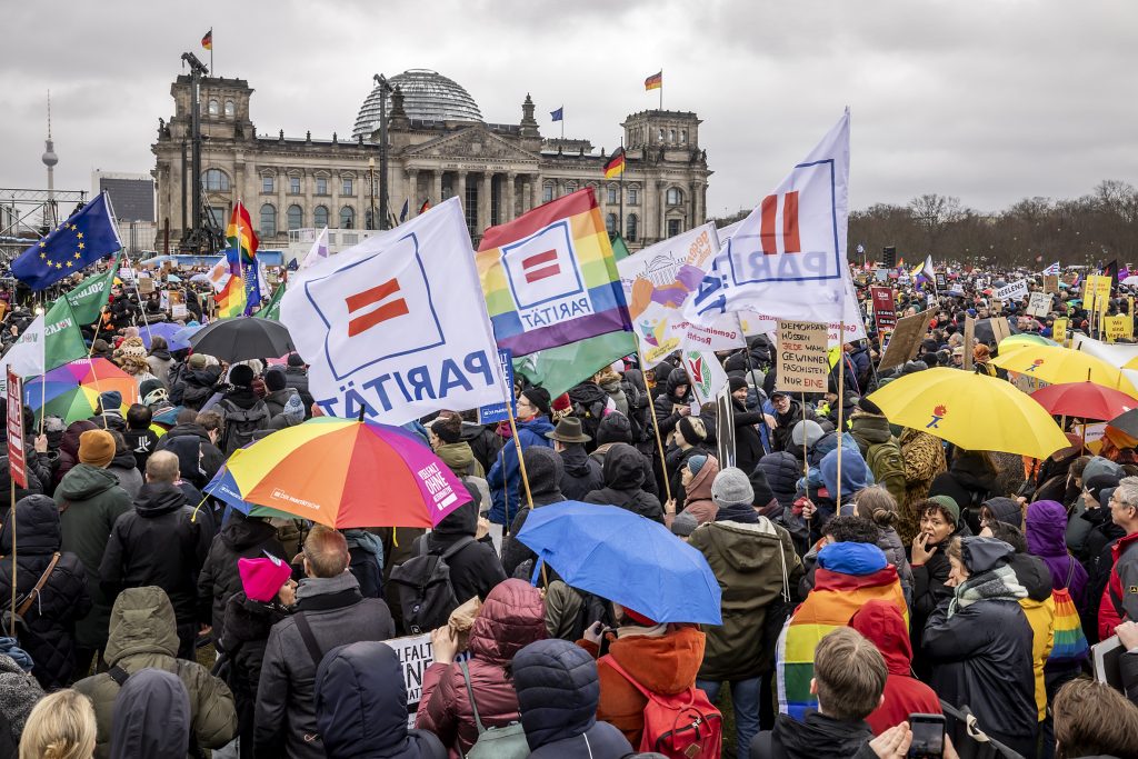 Mehrere Redner richten Forderungen an die demokratischen Parteien, sich gegen den Rechtsruck zu stellen und rechten Forderungen und Narrativen entgegenzutreten. Luisa Neubauer, Gesicht der deutschen Klimabewegung, sagt laut Redemanuskript: Man könne nicht an einem Tag auf der Demo «Friede, Freude, Demokratie für alle» rufen und dann ins Parlament zurückkehren und tief rechte Wörter, Sprache und Politik in die demokratische Mitte hineintragen. «Das geht nicht auf.»
