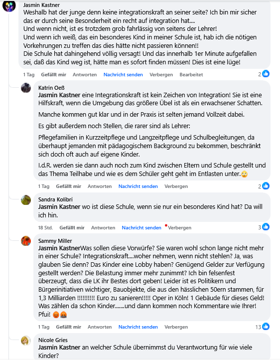Der Beitrag wird auch auf der Facebook-Seite von News4teachers hitzig diskutiert (Auszug):