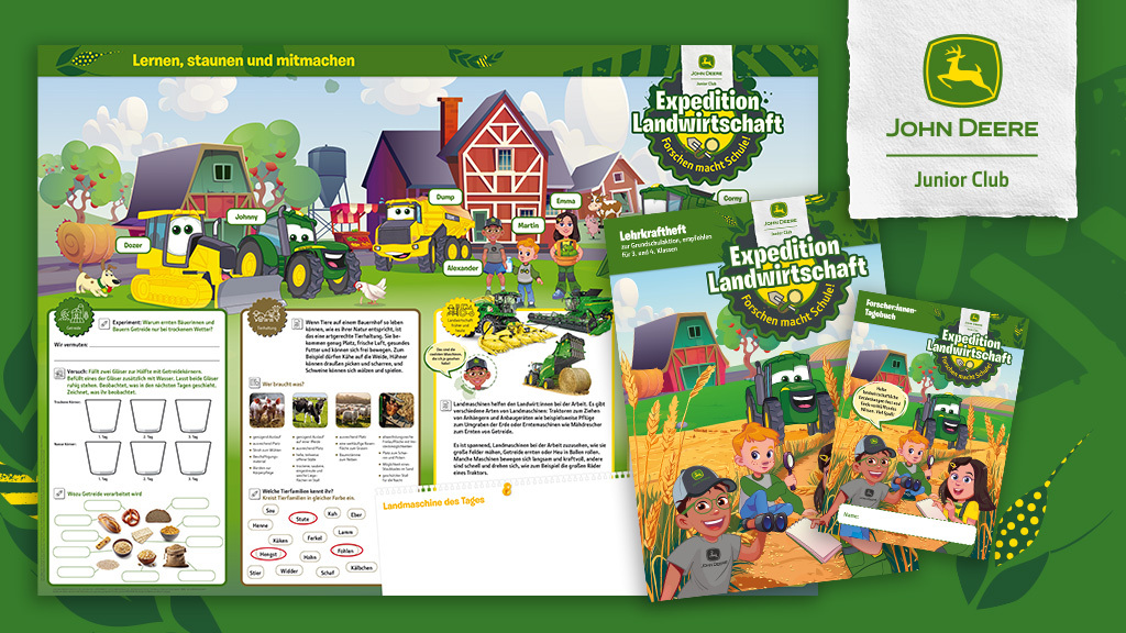 Ziel ist es, Kindern einen Zugang zu Themen wie nachhaltige Landwirtschaft, regionaler Lebensmittelproduktion und verantwortungs-vollem Konsum zu eröffnen – und sie dabei selbst aktiv werden zu lassen. „Kinder brauchen keine Frontalvorträge, sie brauchen Erlebnisse“, sagt das Team des John Deere Junior Clubs. „Unser Material lässt sie entdecken, hinterfragen und kreativ sein.“