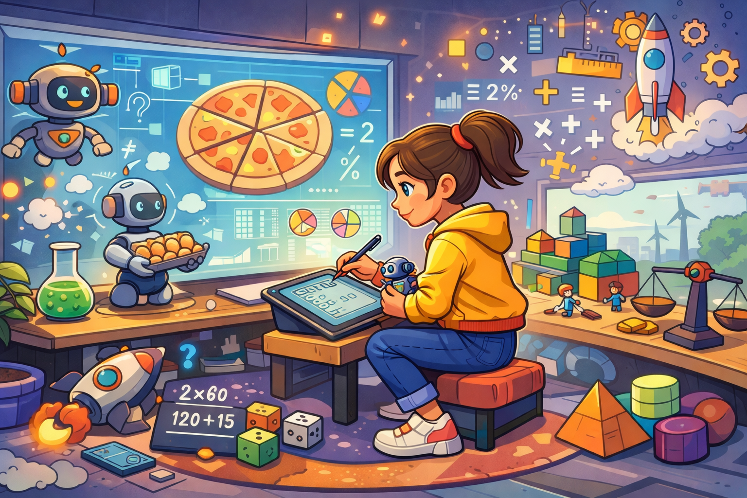 Bruchrechnung: Brüche werden über Alltagssituationen eingeführt. Wird eine Pizza unter vier Kindern geteilt, erhält jedes Kind ein Viertel. Zwei Viertel entsprechen einer Hälfte. „Erst, wenn diese Zusammenhänge verstanden sind, folgen Rechenregeln“, erklärt das Ministerium.