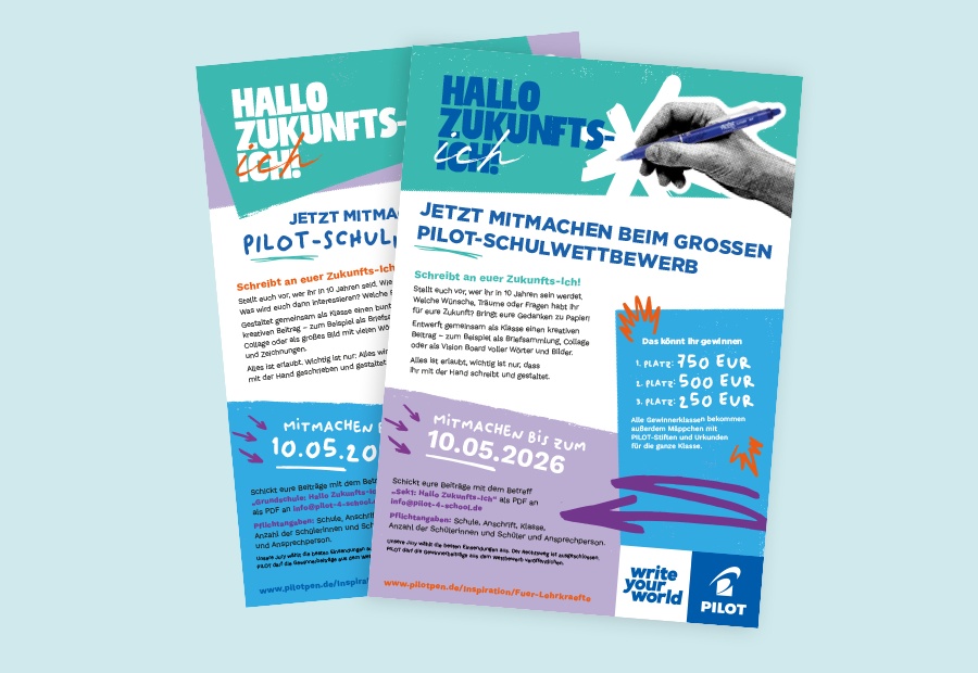 Wie sieht mein Leben in zehn Jahren aus? Und was möchte ich meinem zukünftigen Ich heute schon mit auf den Weg geben? Mit dem neuen Schulwettbewerb „Hallo Zukunfts-Ich“ lädt die Bildungsinitiative PILOT 4 School Schulklassen der Grundschule und der Sekundarstufe I aus Deutschland und Österreich dazu ein, genau darüber nachzudenken – und ihre Gedanken kreativ mit Stift und Papier festzuhalten.