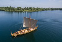 Mit der Schulklasse im (originalgetreu nachgebauten) Römerschiff über den Baggersee