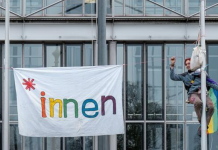 MÜNCHEN. Seit Montag ist in Bayern das Genderverbot in Kraft. Damit wollen sich zwei junge Menschen nicht abfinden. Sie klettern auf die Fahnenmasten vor...