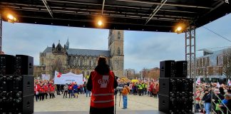 MADEBURG. Mit Trillerpfeifen und Plakaten haben Lehrkräfte in Magdeburg dagegen demonstriert, dass sie voraussichtlich ab Mitte März eine Stunde pro Woche länger vor den...